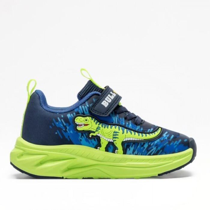 Παιδικά sneakers Explorator Rex με εντυπωσιακό 3D δεινόσαυρο σε neon πράσινες αποχρώσεις που χαρίζουν δυναμικό και παιχνιδιάρικο χαρακτήρα σε κάθε εμφάνιση. Ο συνδυασμός μπλε με φωτεινή πράσινη σόλα δημιουργεί μοντέρνο αποτέλεσμα που ξεχωρίζει, ενώ τα ενσωματωμένα LED φωτάκια ενεργοποιούνται και απενεργοποιούνται εύκολα μέσω κουμπιού ON/OFF, προσφέροντας extra ενθουσιασμό σε κάθε βήμα. Το διαπνέον επάνω μέρος εξασφαλίζει σωστό αερισμό, το αυτοκόλλητο κλείσιμο με ελαστικά κορδόνια προσφέρει εύκολη εφαρμογή και σταθερό κράτημα, ενώ η ελαφριά και αντικραδασμική σόλα στηρίζει άνετα το πόδι στο περπάτημα, το τρέξιμο και το καθημερινό παιχνίδι. Ιδανική επιλογή για σχολείο, βόλτες και δραστήριες περιπέτειες με στυλ και άνεση.