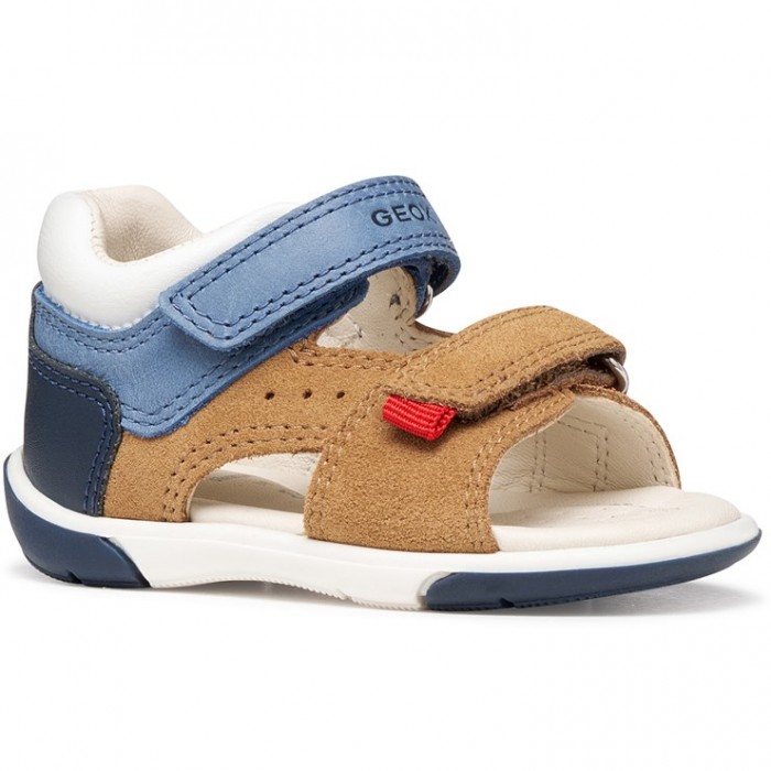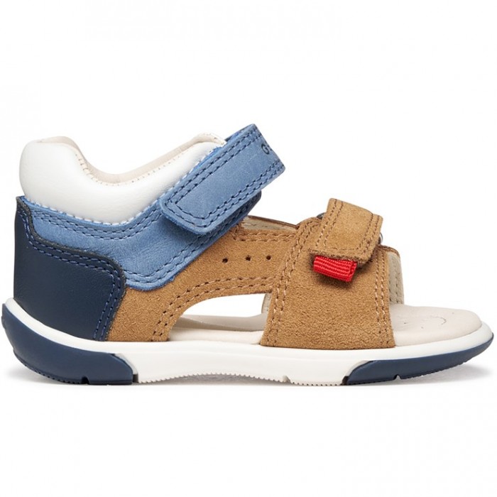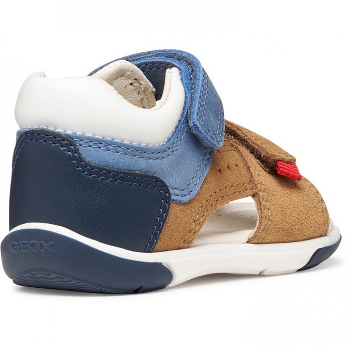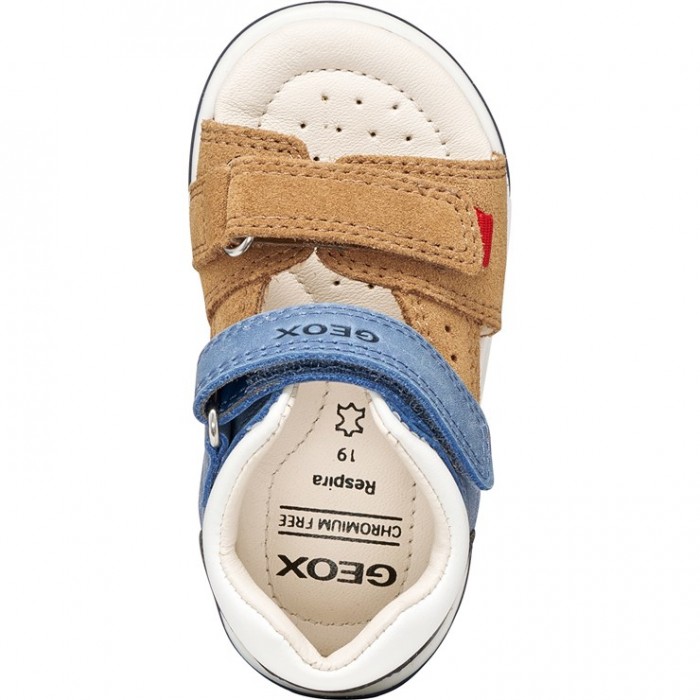 Πέδιλο GEOX καφέ χρώμα με λεπτομέρειες σε λευκό και σιέλ χρώμα.